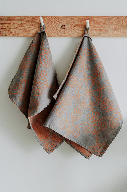 Lina dvielis ar Austras koka rakstu, pelēks