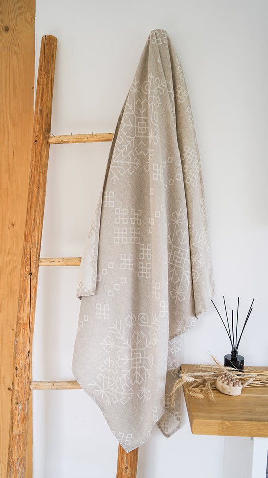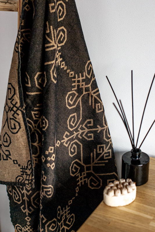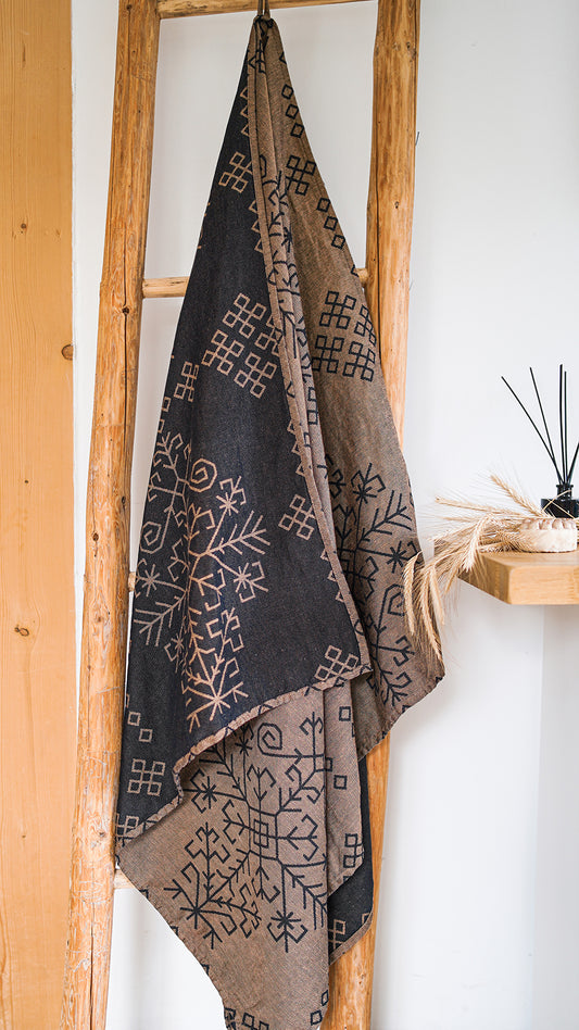 Lina dvielis ar Austras koka rakstu, bronzas/melns
