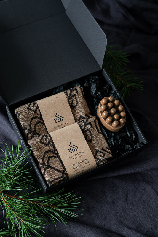 Esam sagatavojuši Tev dāvanu komplektus, kuros apvienoti tekstili ar brīnišķīgiem Latvijas meistaru izstrādājumiem, kas iepriecinās Tavus mīļos, ģimeni, draugus un kolēģus.