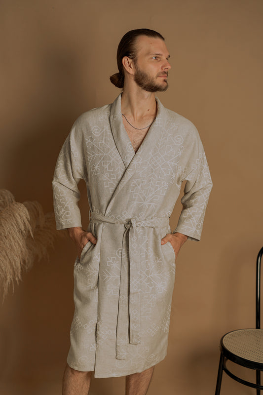 Linen Boho Style Robe / Kimono Austra Unisex, Mid