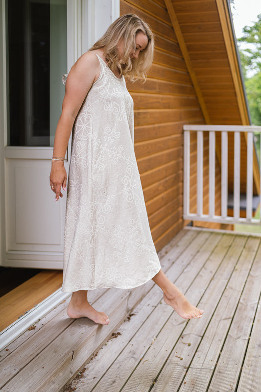 White Cotton Tablecloth with Lace, Sun Mandala Pattern