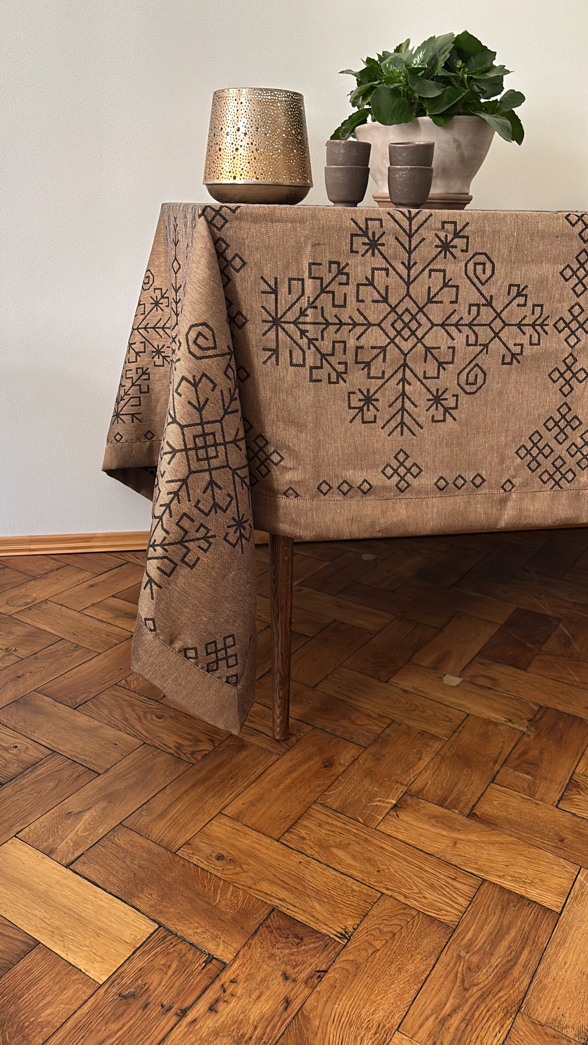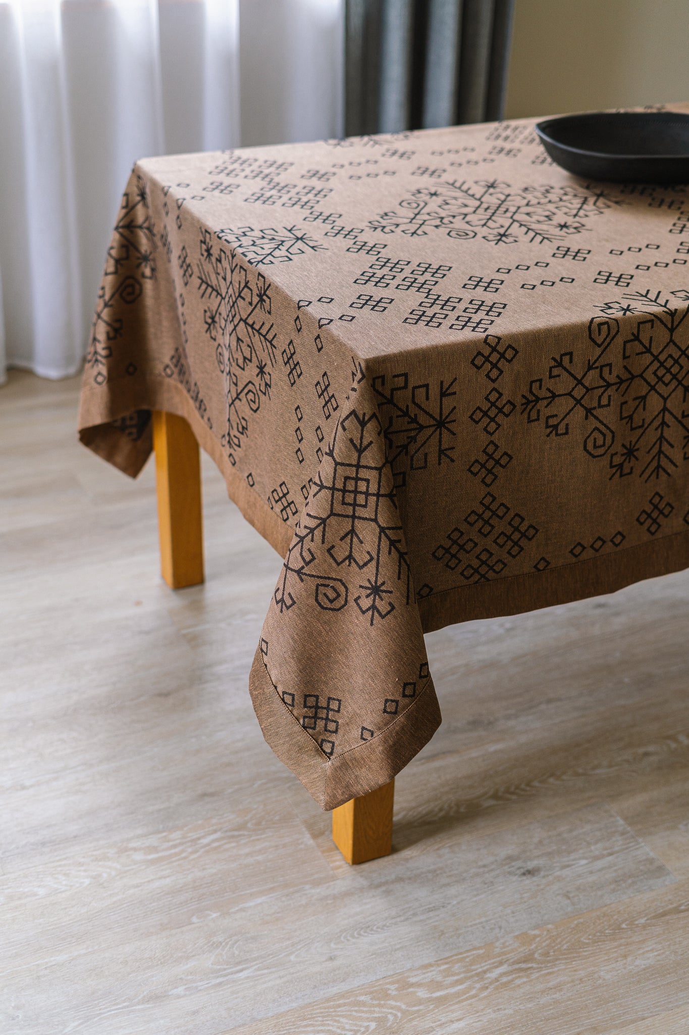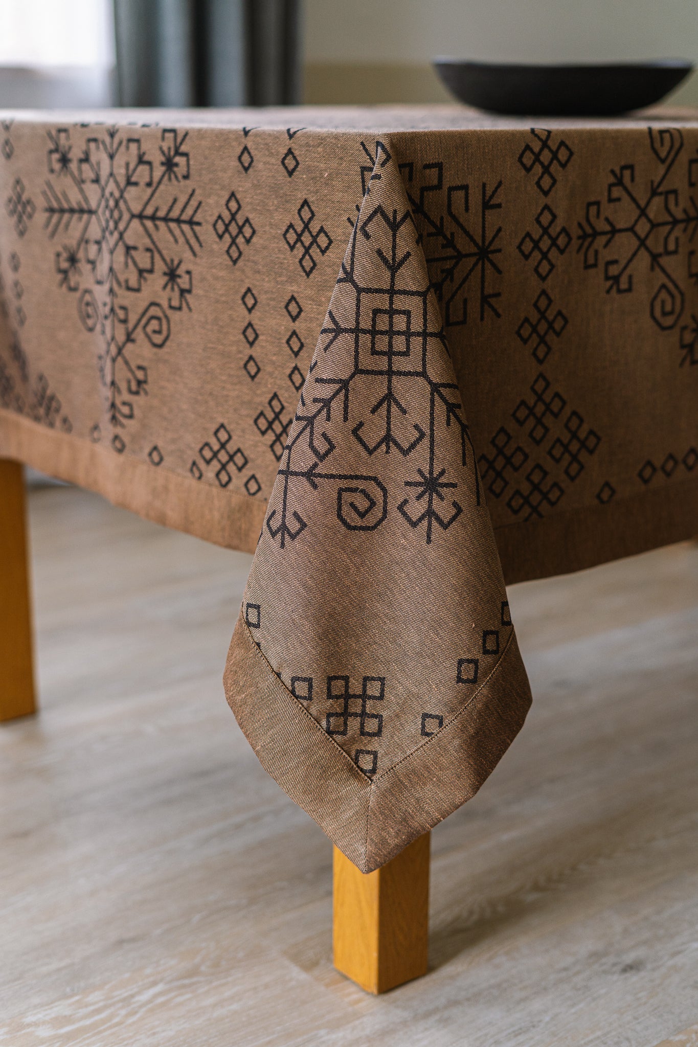 Linen Tablecloth Austra Tree Pattern, bronze/black