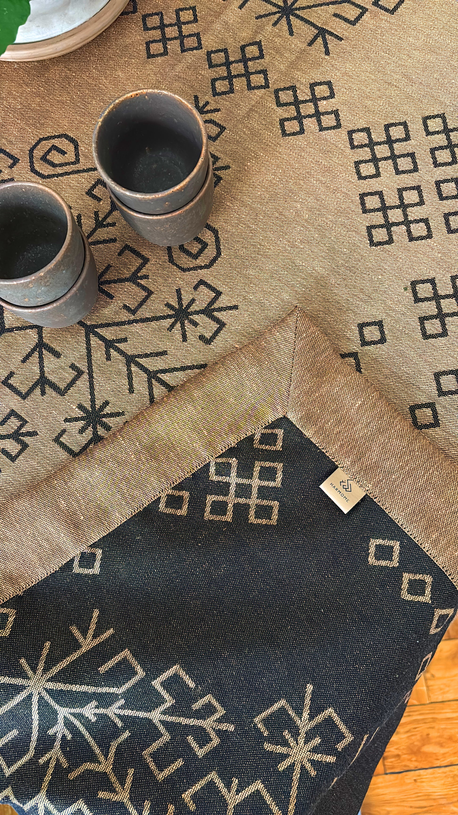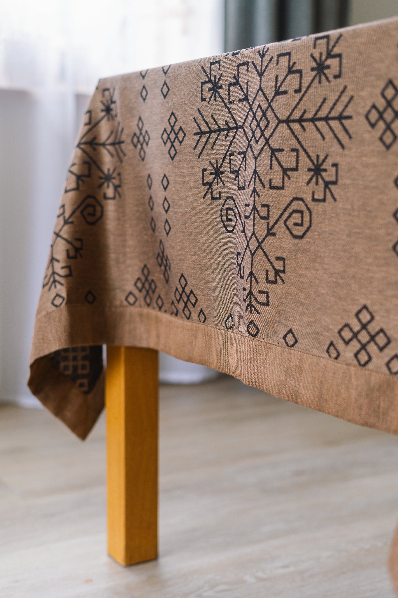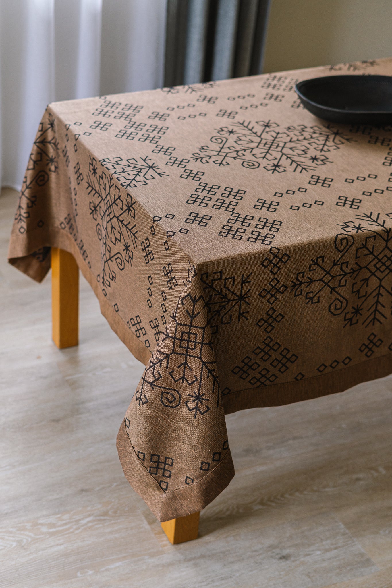 Linen Tablecloth Austra Tree Pattern, bronze/black