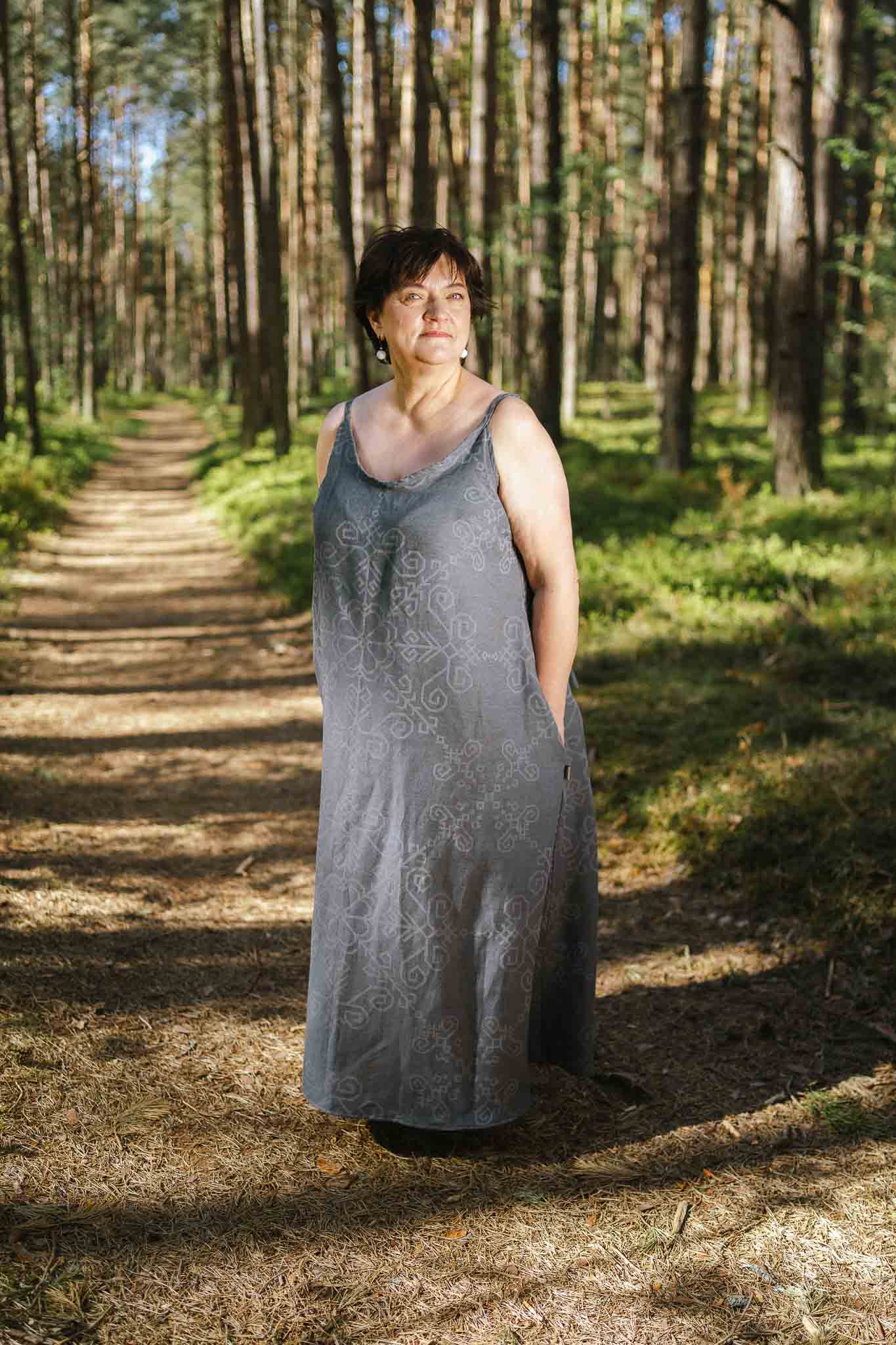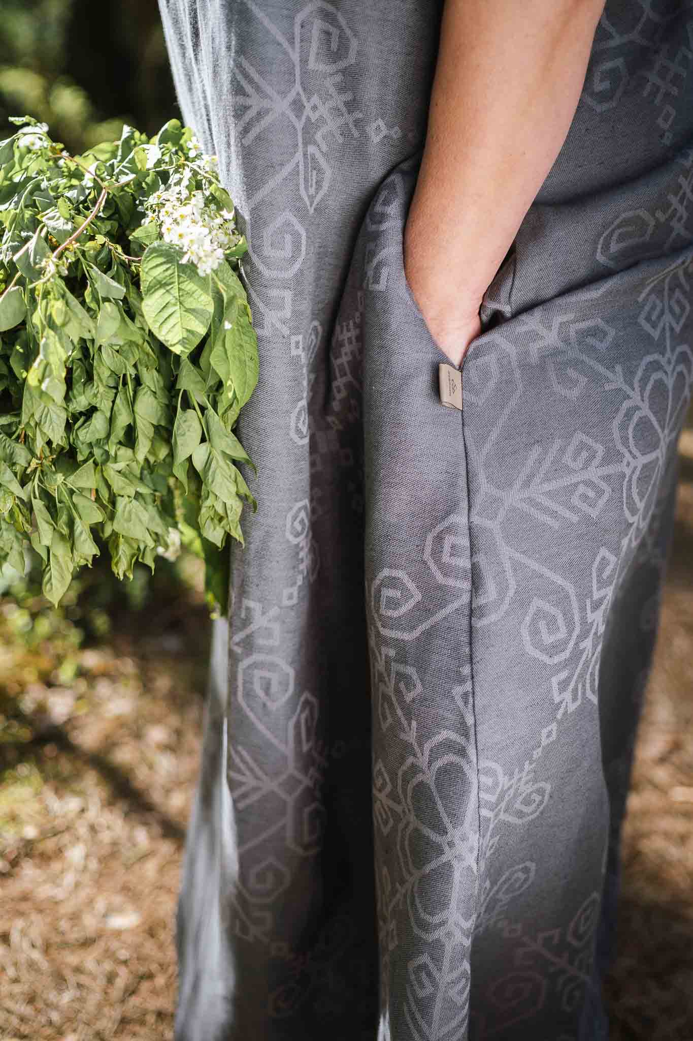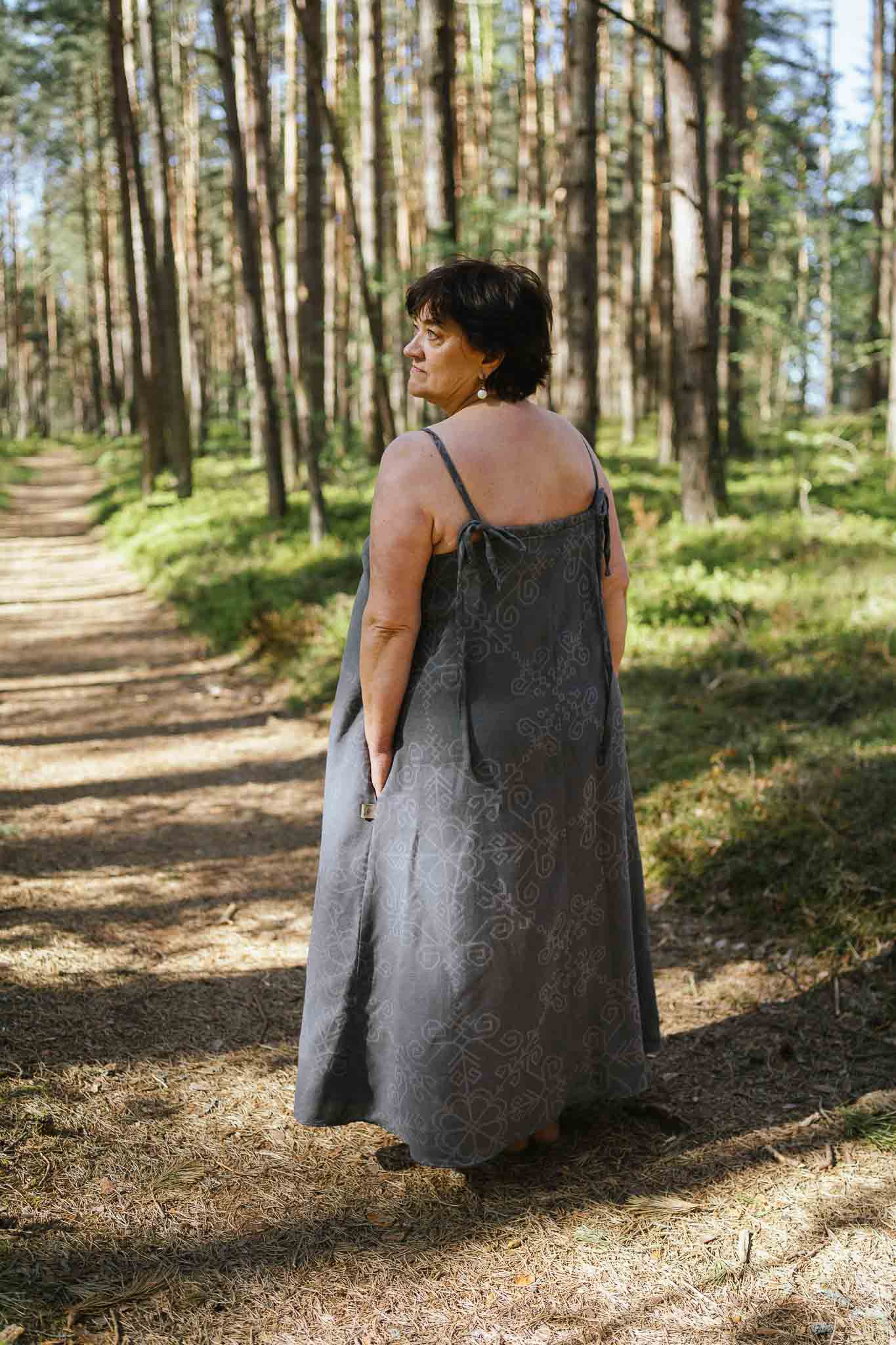 The dress is made of the highest quality linen/cotton jacquard fabric. The symbol of Sun is woven inside of it.