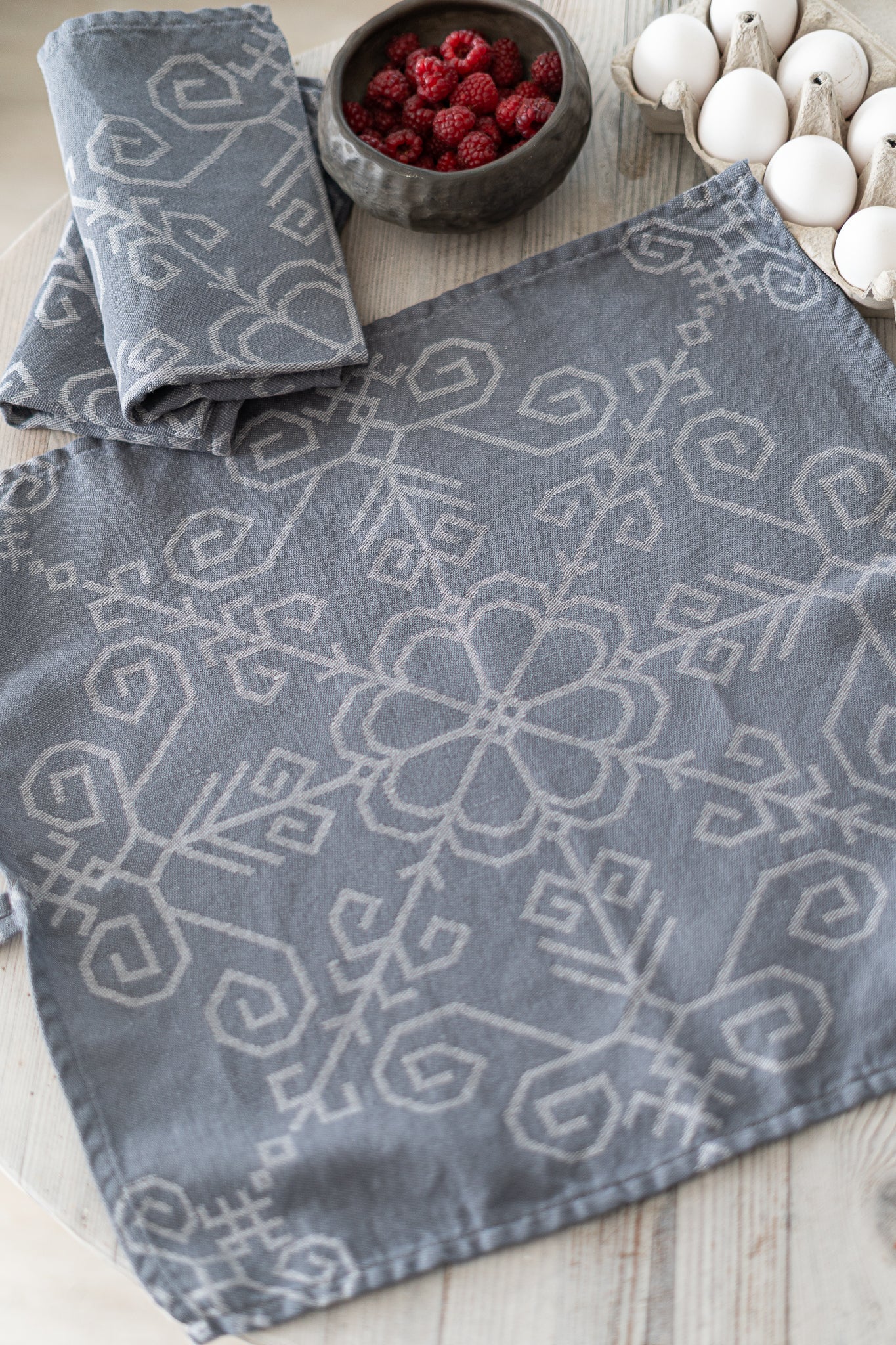 Lina virtuves dvielis ar Saules mandalu, tumši pelēks