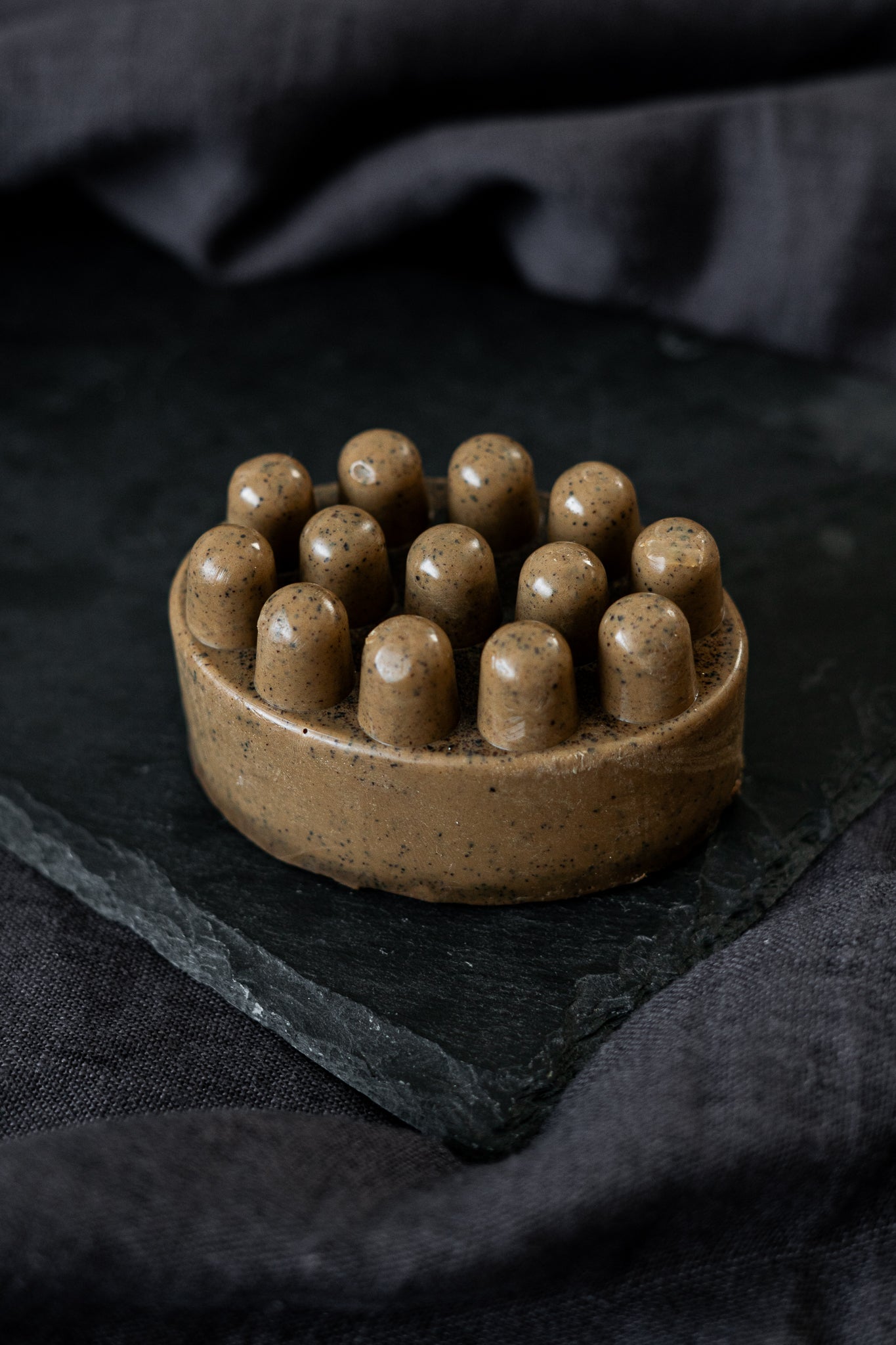 Kafijas masāžas ziepju sastāvā ir malta kafija, kas parūpēsies par vieglu pīlingu.