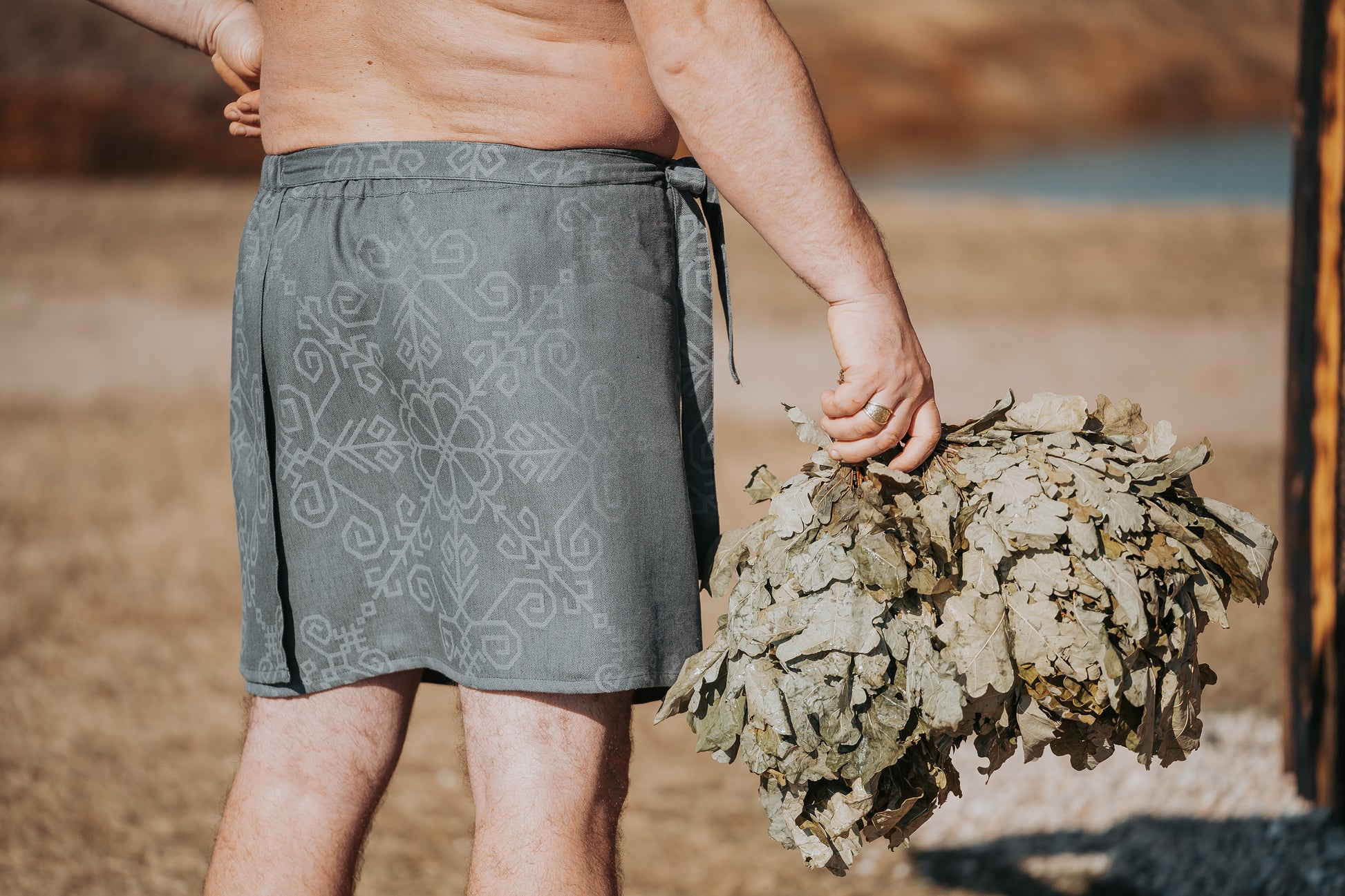 Pirts svārki ir izgatavota no augstākās kvalitātes abpusēja lina/kokvilnas žakarda auduma. Tajā ir ieausts Saules simbols.