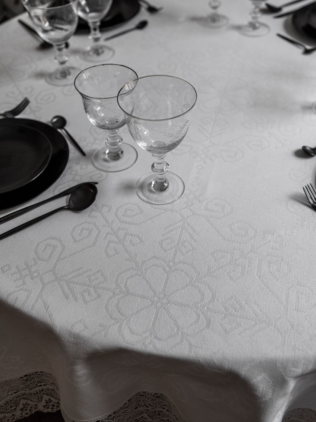 Kokvilnas galda celiņš ar Saules rakstu, balts