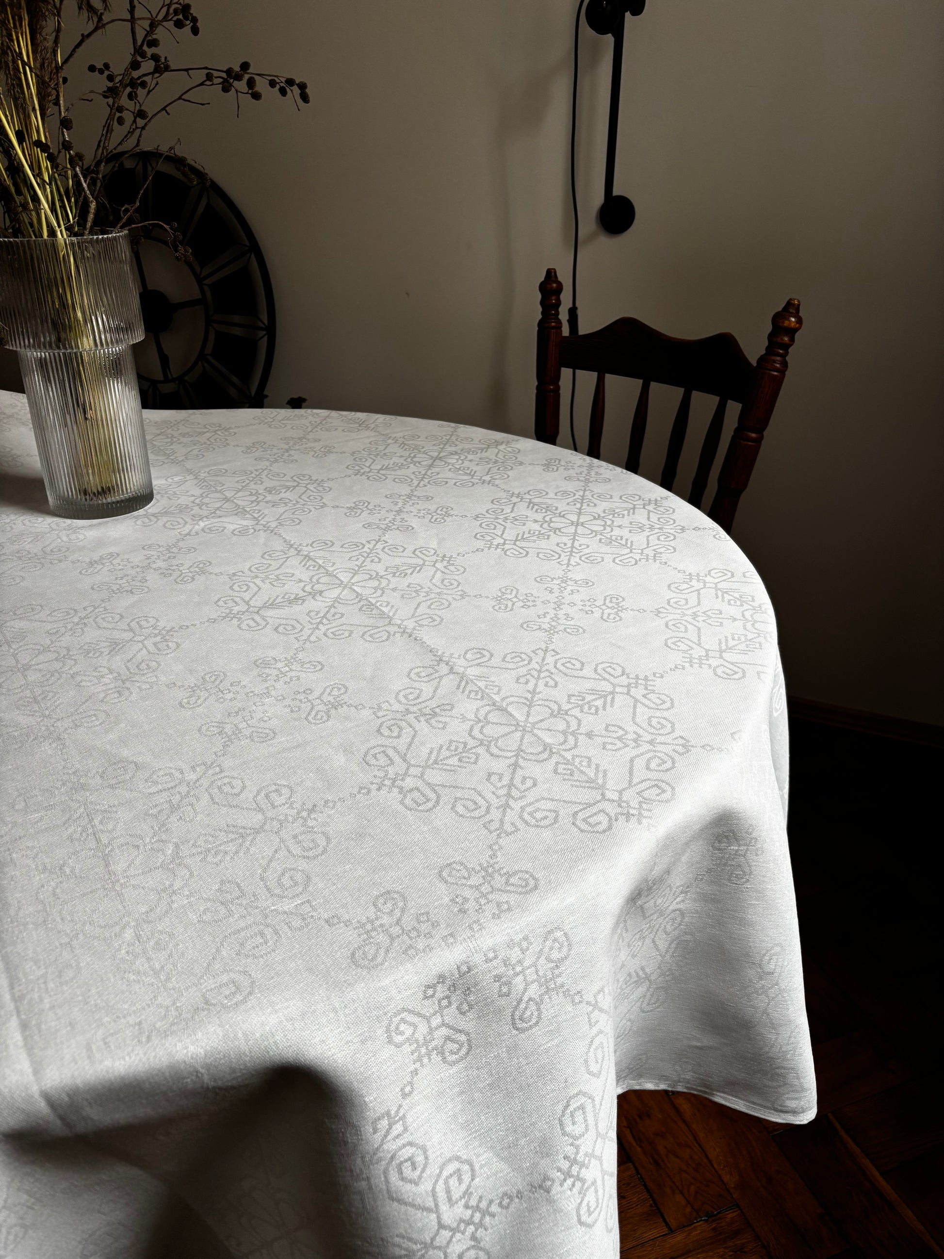 Tas ir augstākās kvalitātes kokvilnas galdauts. Audums ir austs abpusējs žakards.
